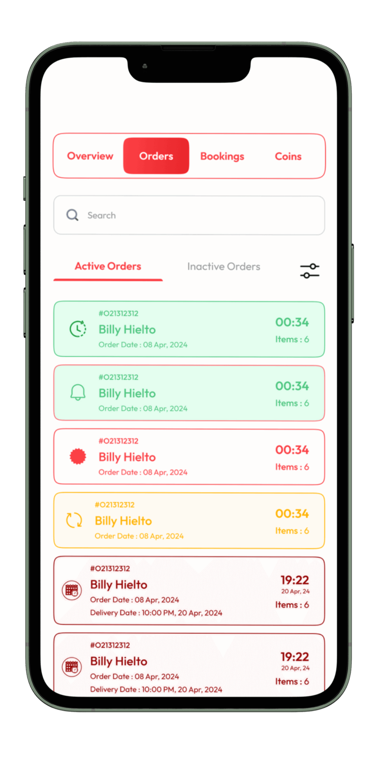 ألقِ نظرة أقرب على تطبيق DeliTen Manager من خلال لقطات الشاشة التفاعلية. ستتعرف على كيفية إدارة الطلبات، المنيو، والفروع من مكان واحد وبطريقة بسيطة وواضحة.